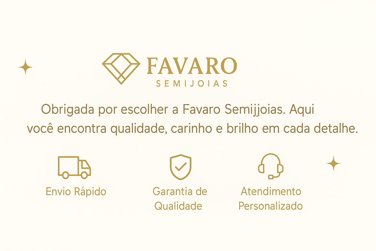 .✨ Obrigada por visitar a Favaro Semijoias!Todas as nossas peças são selecionadas com carinho, possuem banho de alta qualidade, são antialérgicas e pensadas para realçar sua beleza todos os dias.📦 Envio rápido | 💳 Pagamento seguro | 🤍 Atendimento humanizado